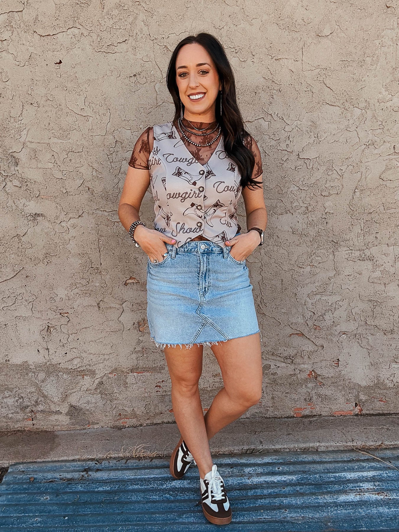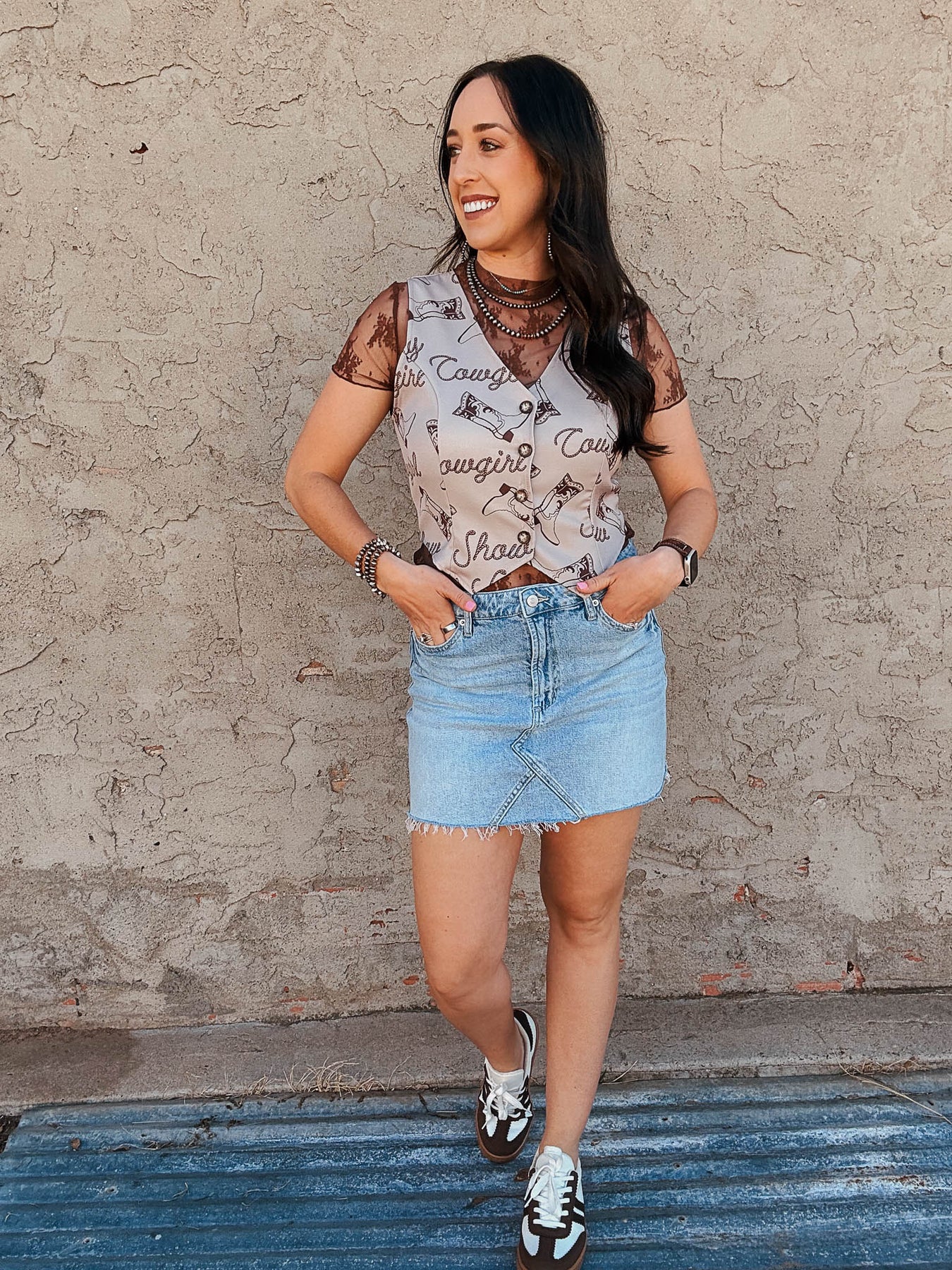 Paired with the Brown Lace Top SS and Cowboy Vibes vest.