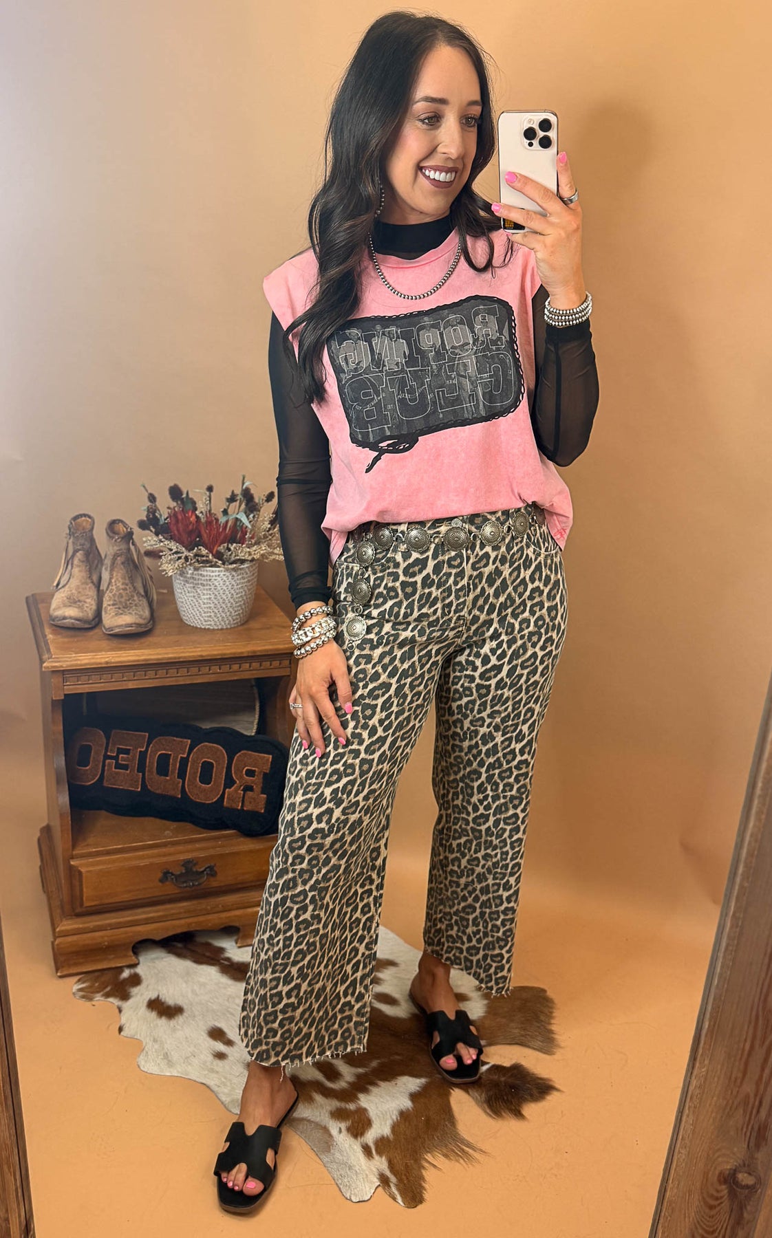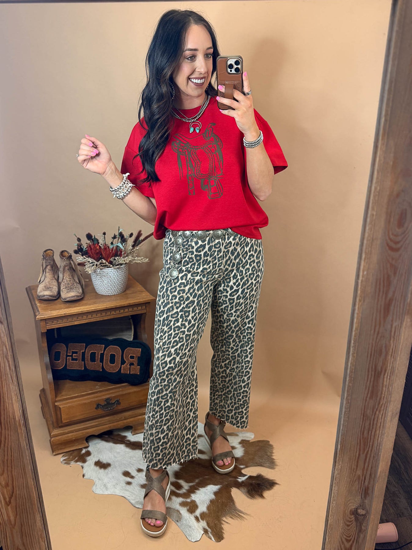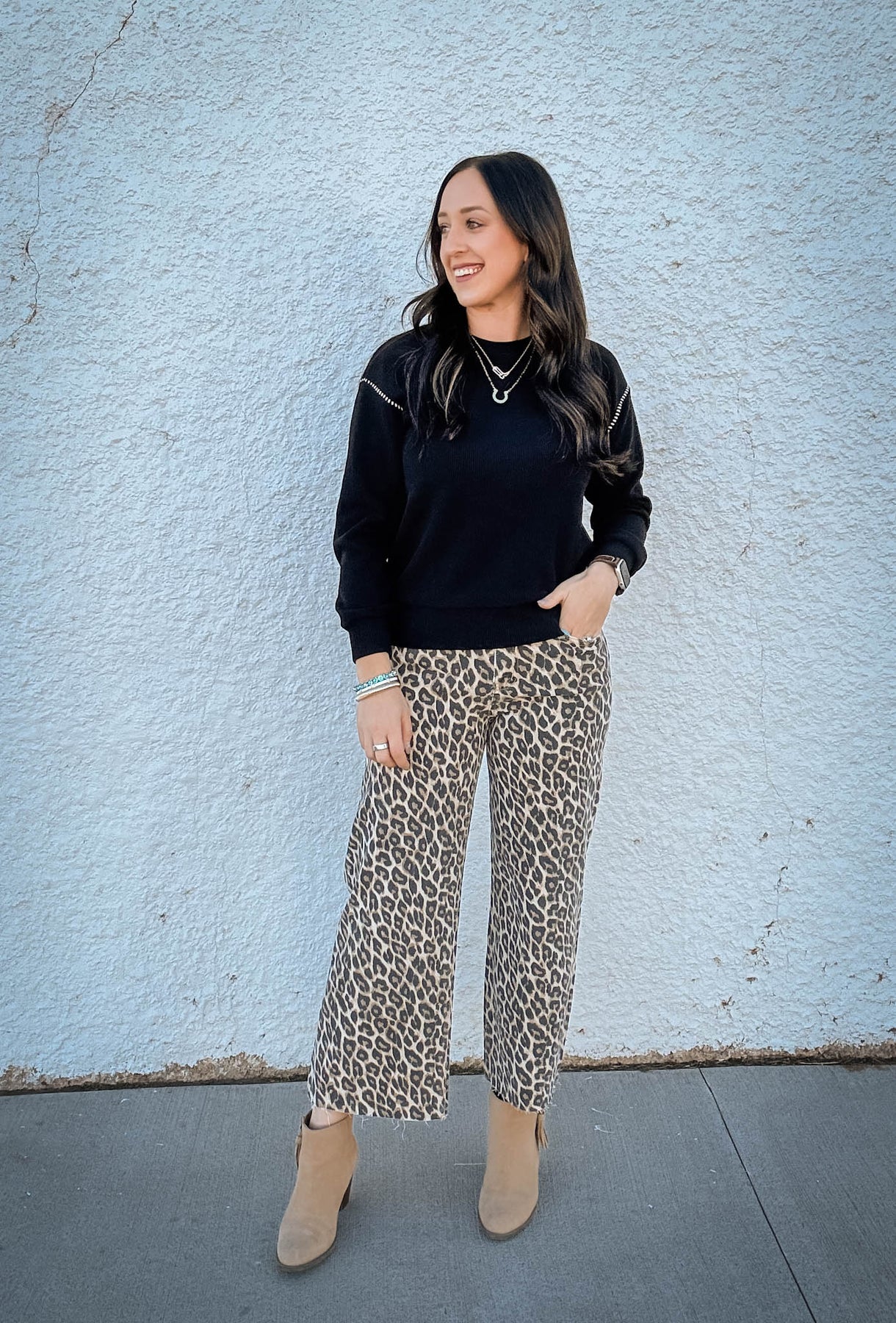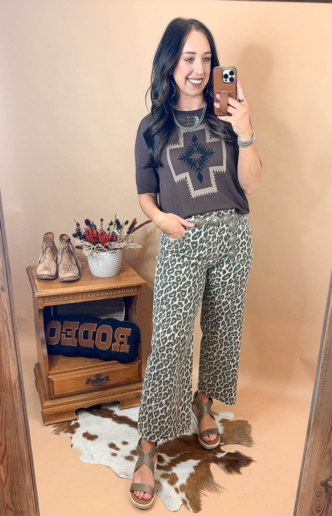 These leopard print crop jeans are your ticket to turning everyday looks into fashion moments. The high-rise fit flatters while the wide legs give you room to move and groove. Bold spots, zero apologies—style them however you want and own it.