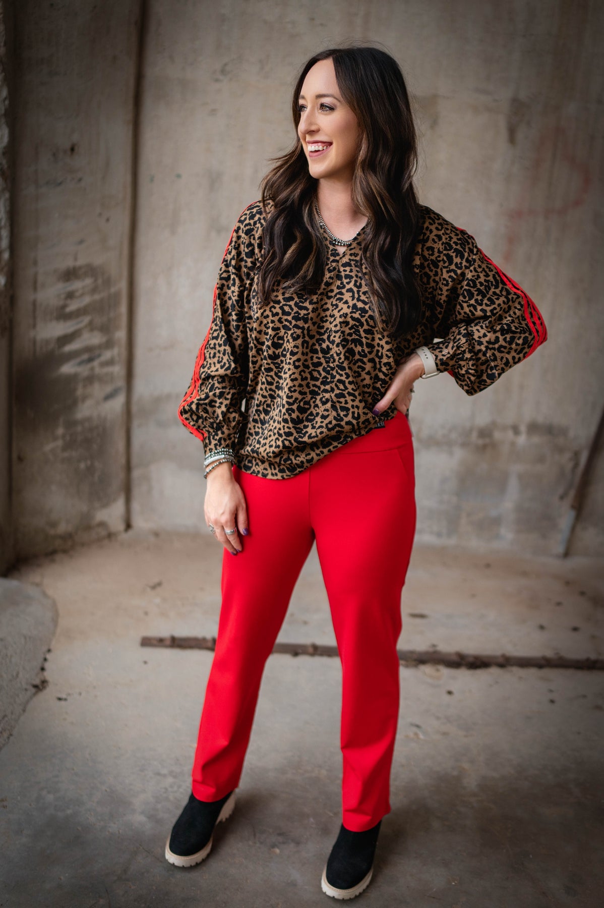 Meet your new favorite dress pant that feels like it should be active wear. They are that comfy!! High quality fabric, not thin where your skin shows through. Elastic waistband, and straight leg that favors a slim leg look.