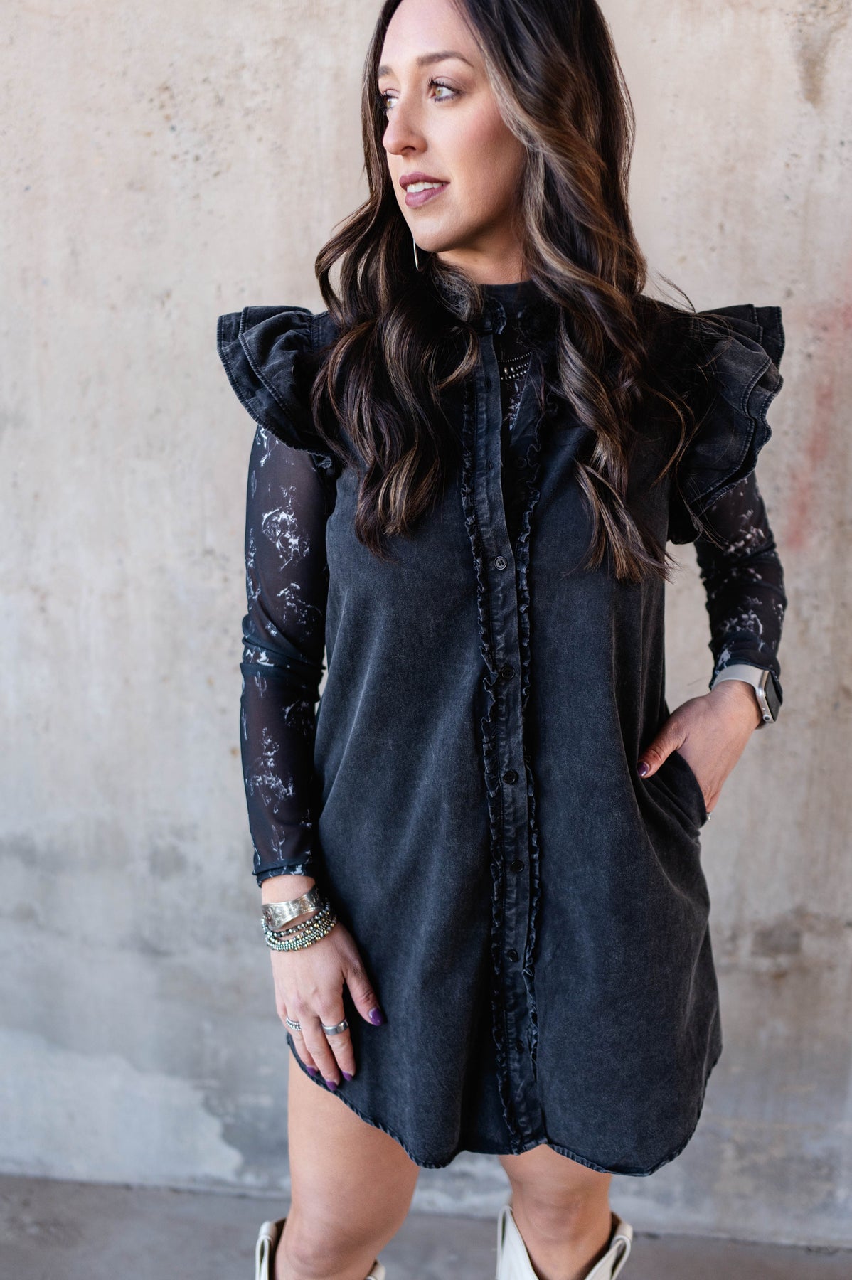 Dress it up or keep it casual—the Riverbend does both. Soft vintage-washed denim, charming ruffle sleeves, and a button-front design make this high-low stunner your new favorite. Effortless style that actually feels as good as it looks.