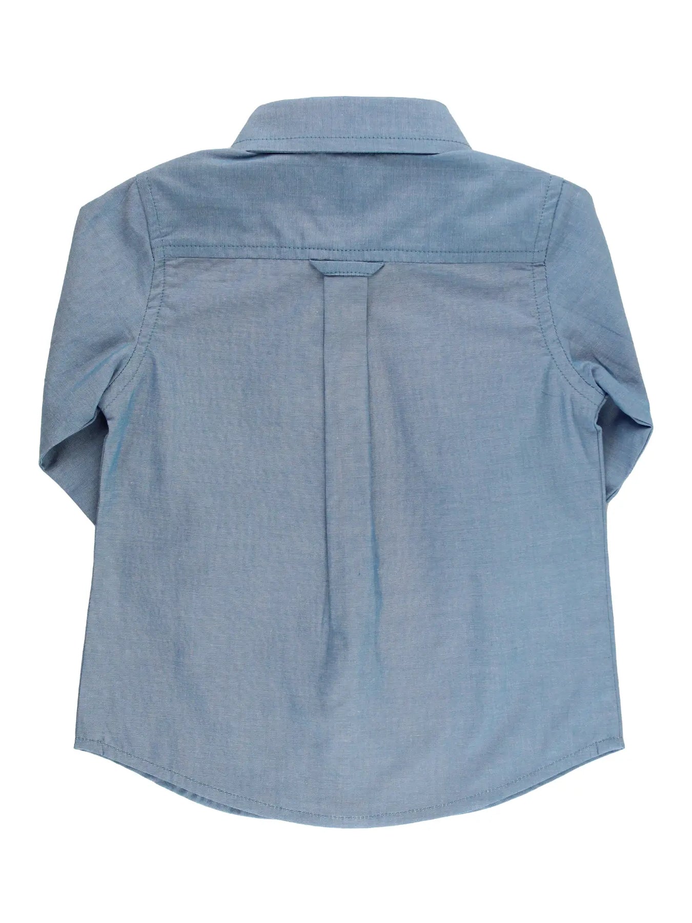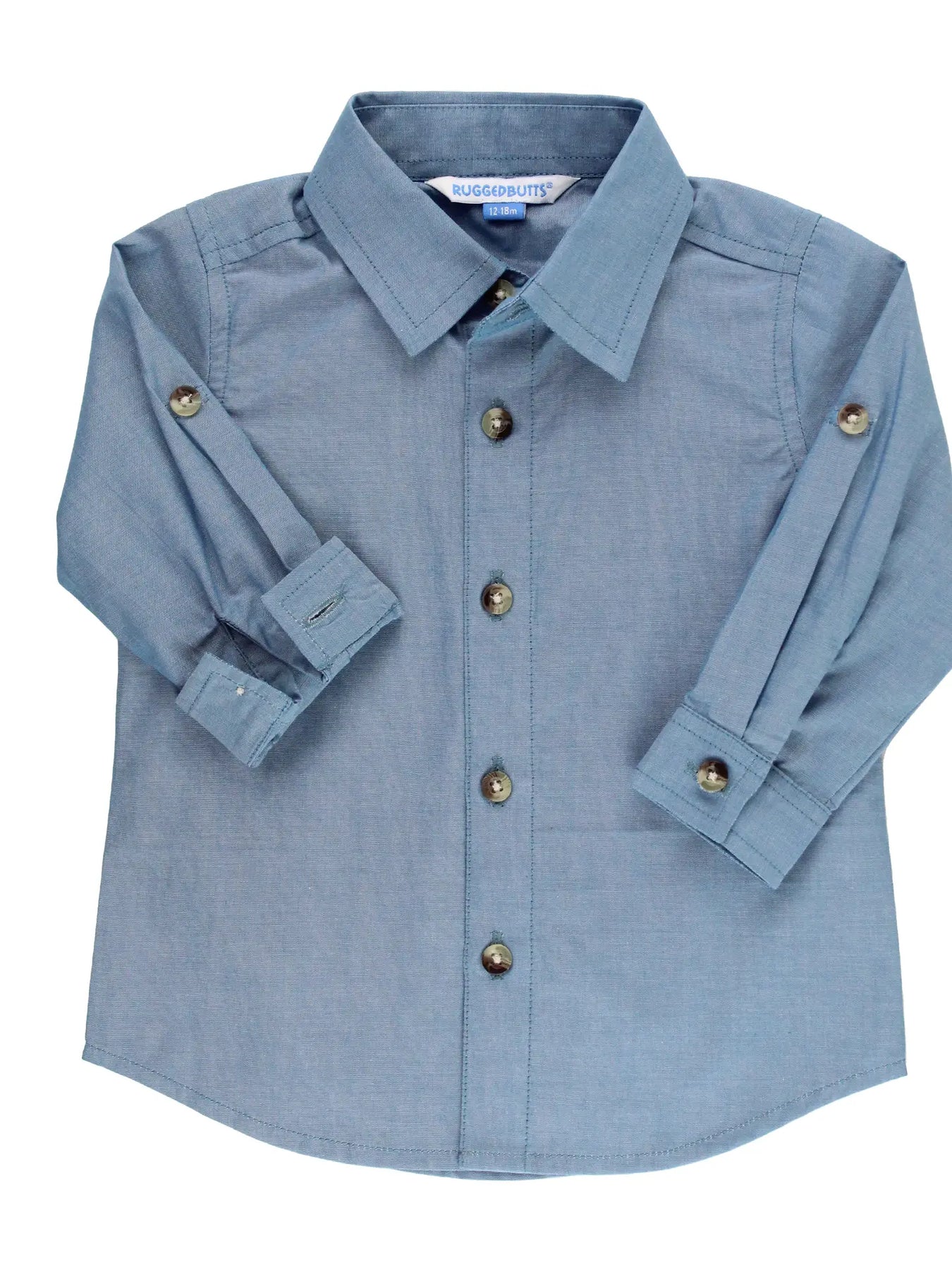 Your little man will be looking spiffy as ever in this button down shirt. He'll stand out on his own, but to add an extra touch, the shirt has the option of roll tab sleeve cuffs to keep him styled, cool and comfortable. Lightweight, breathable, and effortlessly stylish, blue chambray offers the classic look of denim with a smoother feel.