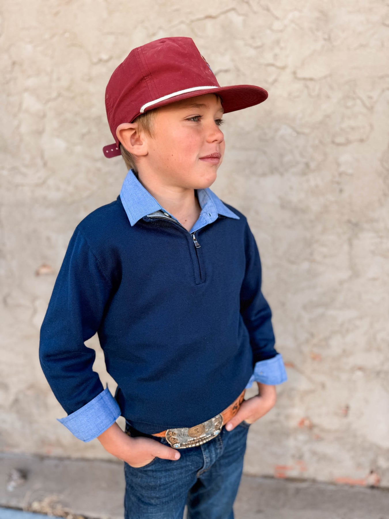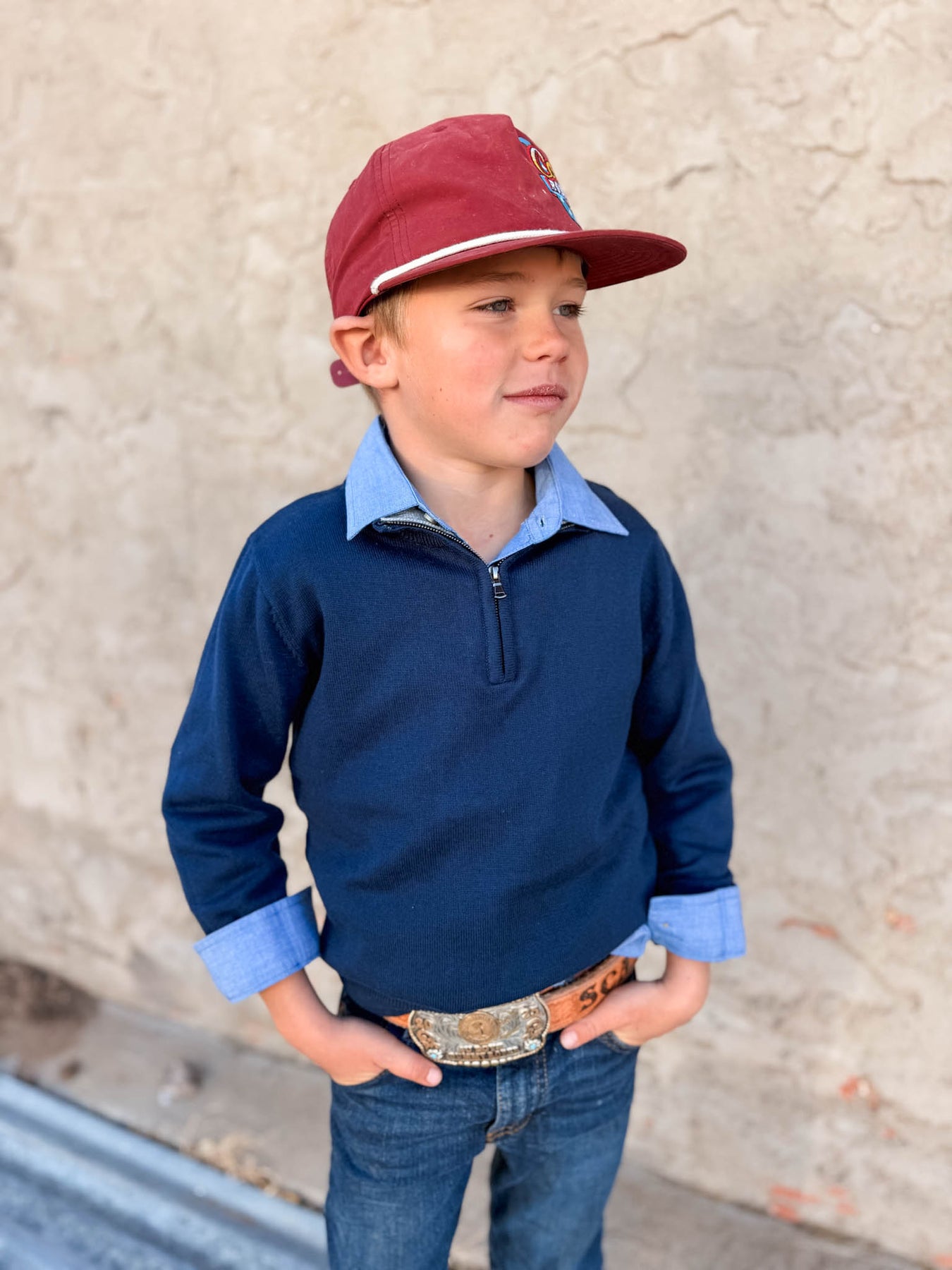 Perfect for layering or standing solo, this dark navy 1/4 zip pullover keeps boys cozy and ready for action. The classic quarter-zip design makes it easy to adjust warmth on the fly, while the relaxed fit allows plenty of room to move. A timeless staple that works for school, play, or casual hangouts.