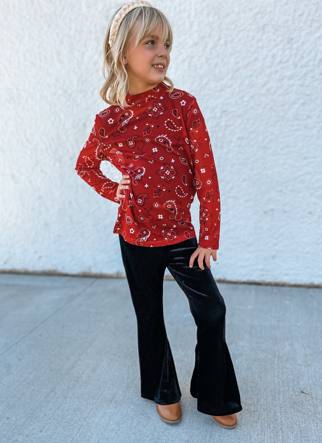 Little girls will love this playful red mesh top featuring a fun bandana print design. The lightweight mesh fabric keeps her cool and comfortable, while the eye-catching pattern adds personality to any outfit. Perfect for casual days, playdates, or mixing and matching with her favorite pieces. A must-have staple that's as fun as she is!