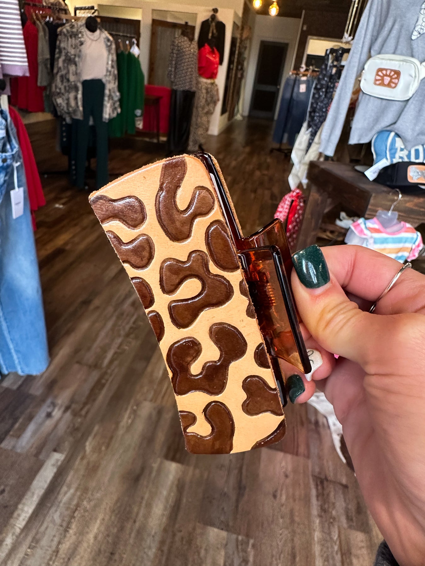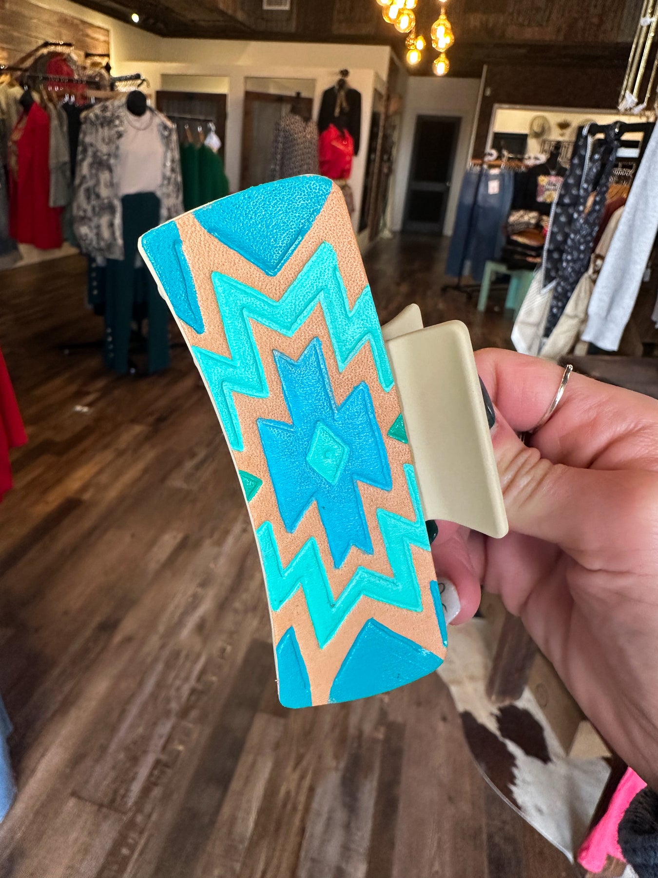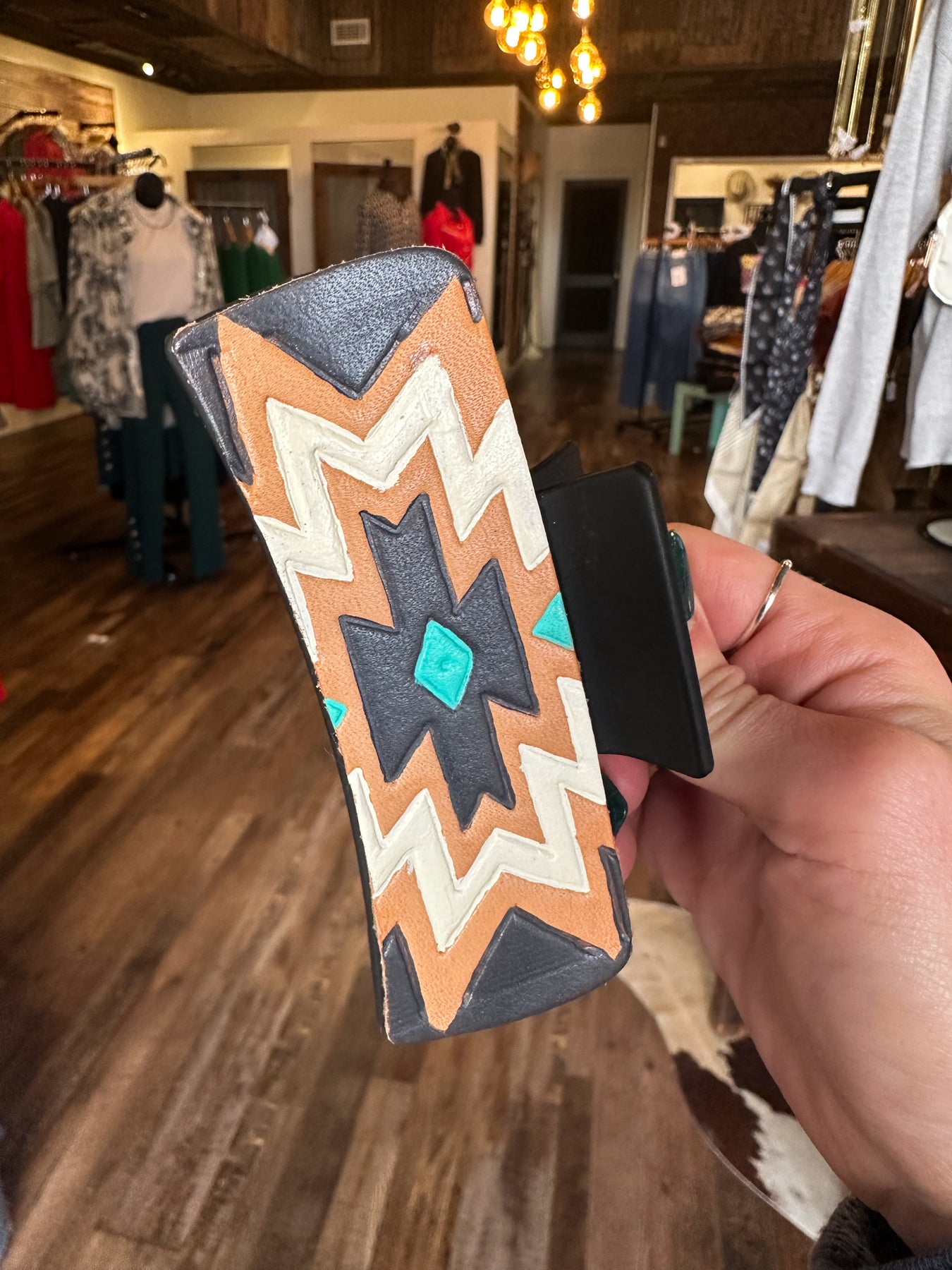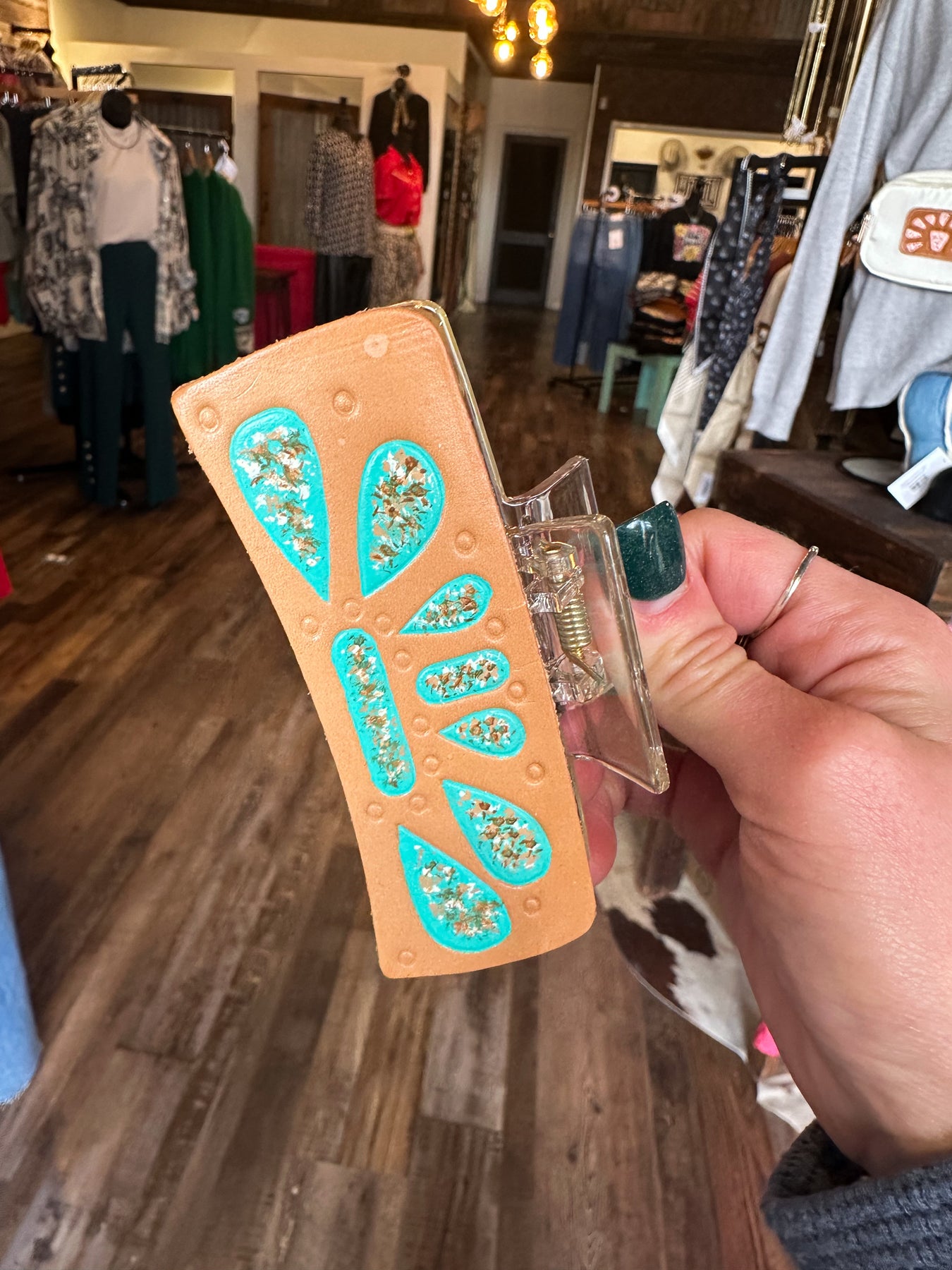 Elevate your everyday style with these stunning 4" hair clips, each adorned with hand-painted leather patches that showcase artisanal craftsmanship. The design brings Western-inspired elegance to your look, while the secure grip keeps your hair perfectly in place all day. A versatile accessory that works as hard as you do.