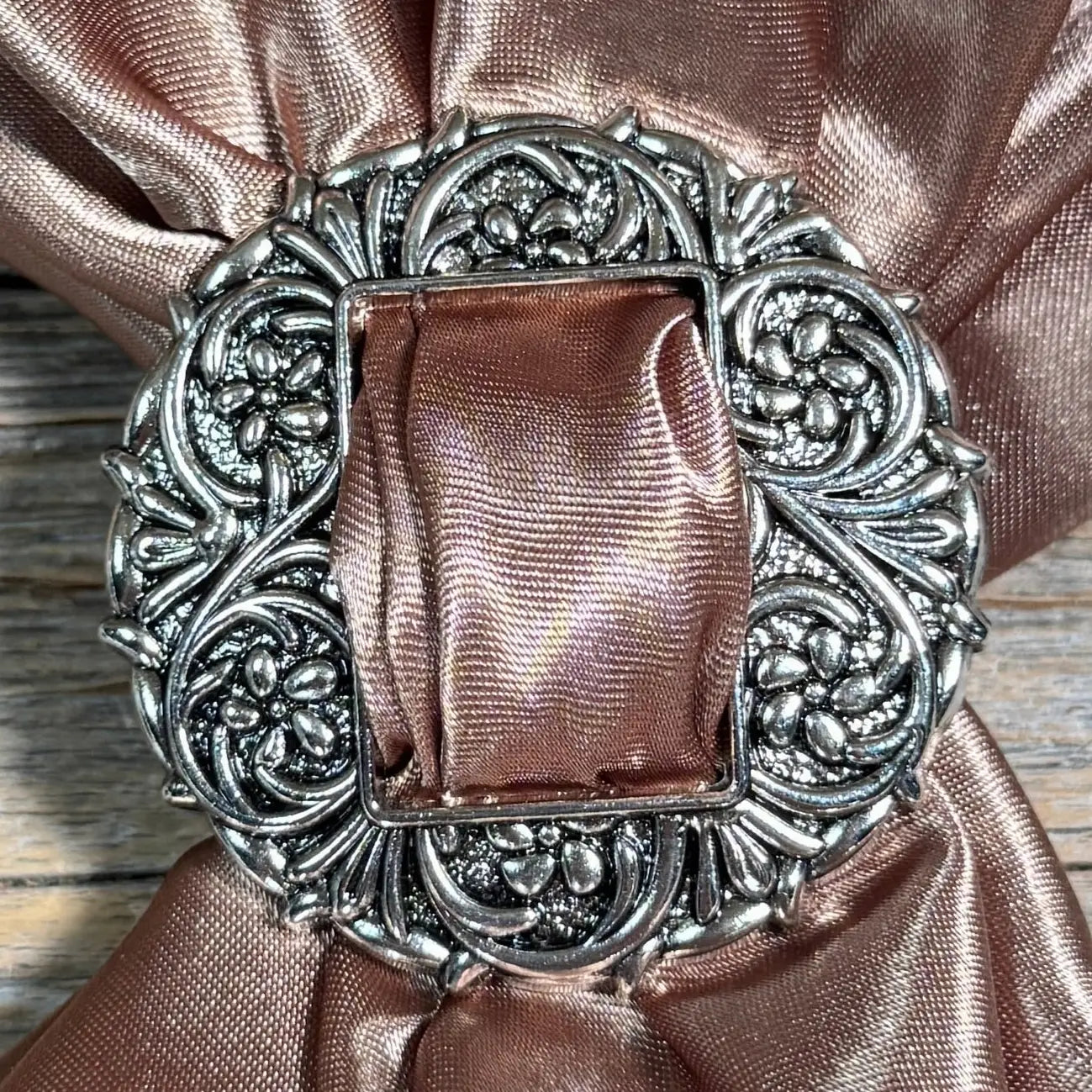Elevate your scarf game with this clever concho slide adapter. Slip it on, tie it your way—traditional knot or fancy flourish—and watch your skinny scarves and wild rags come alive. Installation? Effortless. Style impact? Huge.Measurements: Tooled Floral Leather Length: 1.75" Diameter: 1"