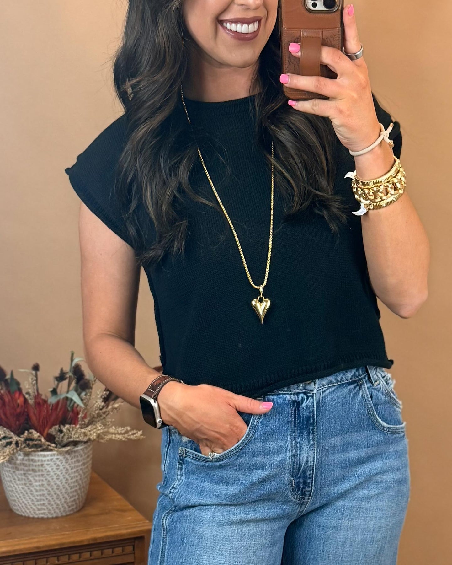 Effortless layering just got more fun. This solid knit top pairs a classic cap sleeve with playful rolled edges at the neckline and hem for a touch of texture. Unlined and non-sheer, it's crafted from medium-weight knit that feels as good as it looks. Perfect for throwing over your favorite layering mesh or wearing solo.