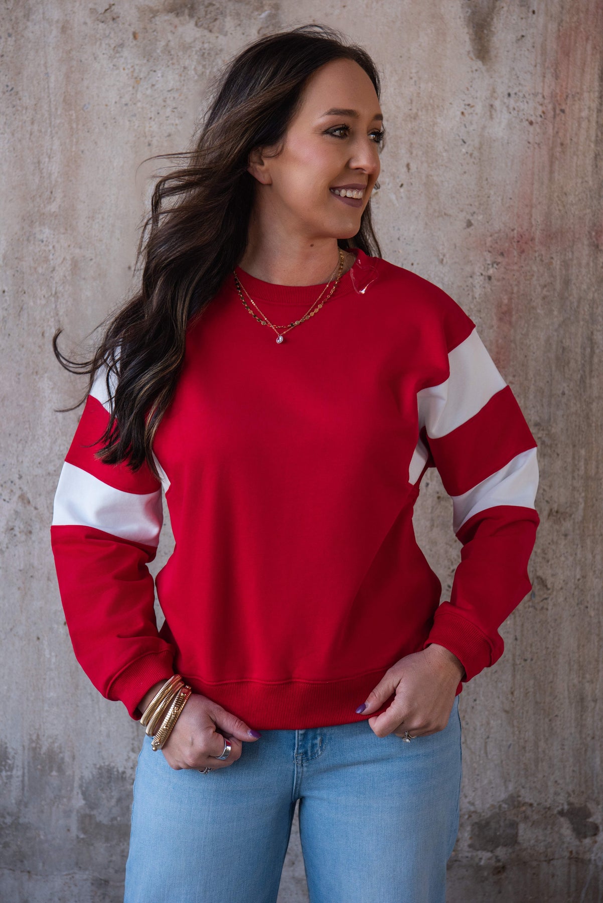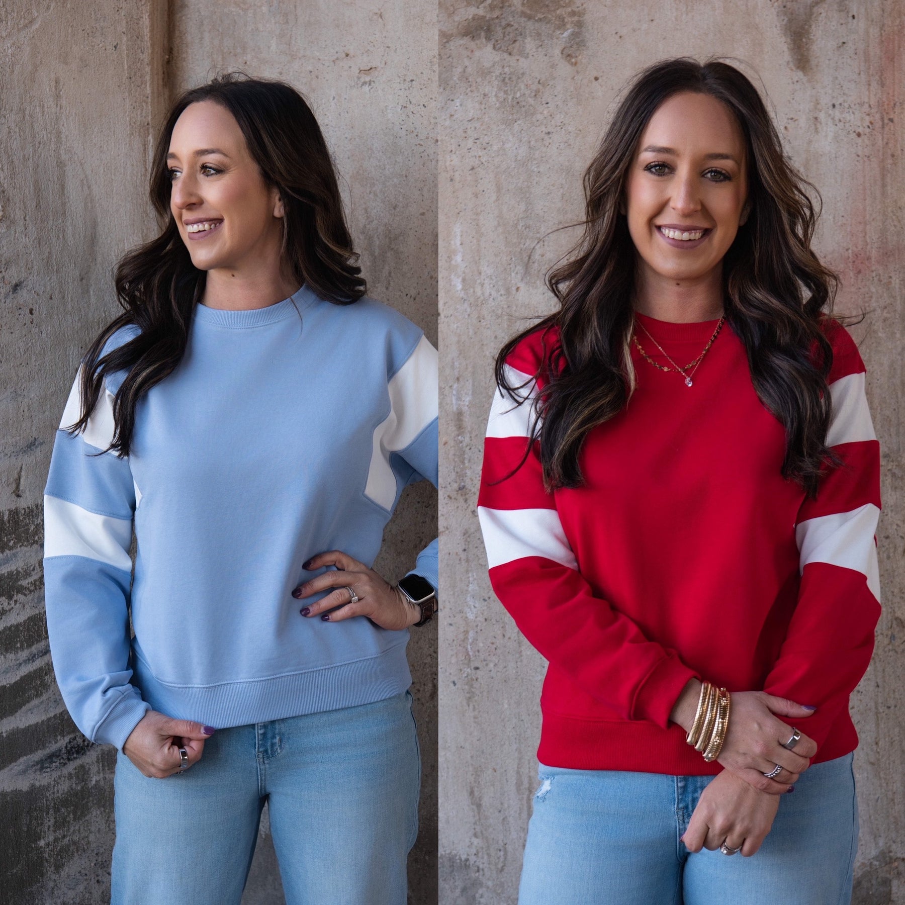 Varsity meets comfort in the Divide Sweater. Crafted in soft french terry, this laid-back layer delivers that effortless athletic aesthetic without sacrificing coziness. Choose between rich periwinkle blue or bold true red—either way, you're getting the perfect piece for casual days that demand style and all-day wearability.