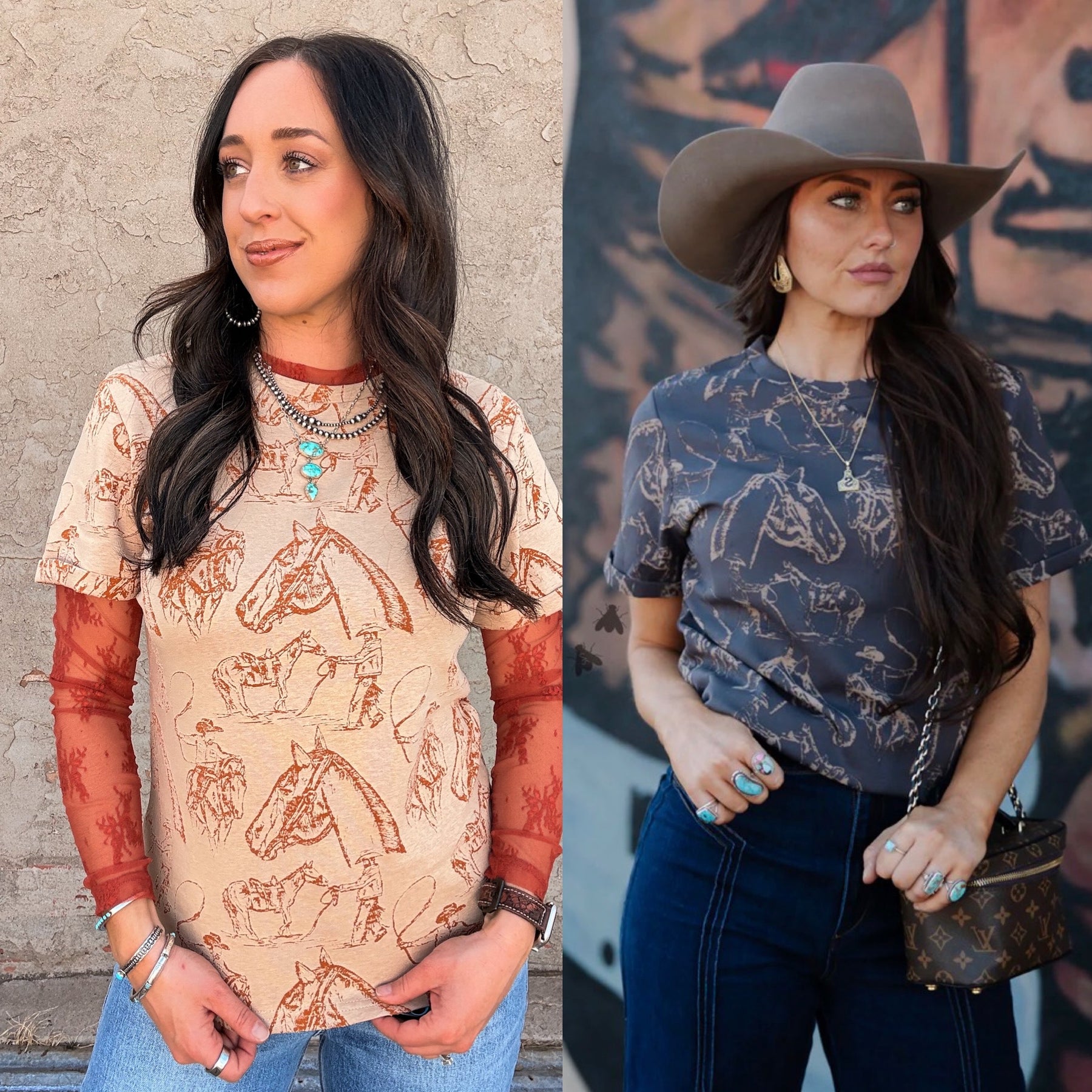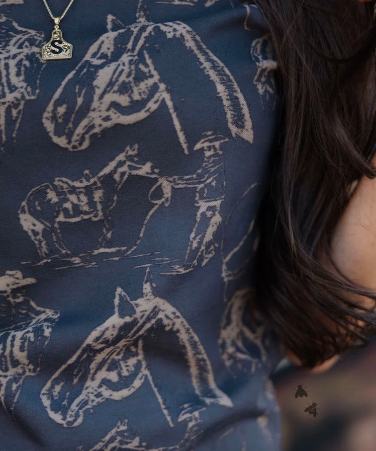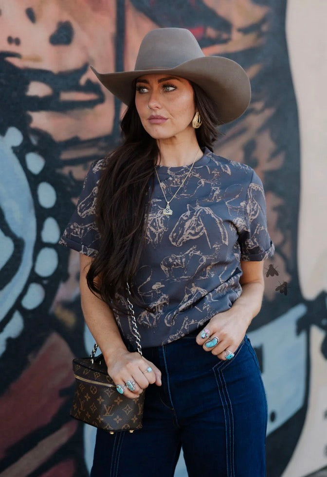 Meet your new favorite tee—where whimsy meets wearability. This charcoal graphic showcases adorable hand-drawn horse doodles created with a signature burnout technique for a soft, lived-in feel. Effortlessly cool on its own or dressed up with your favorite layers, it's the comfort basic that works as hard as you do. Perfect for anyone who loves a little personality in their everyday wardrobe.