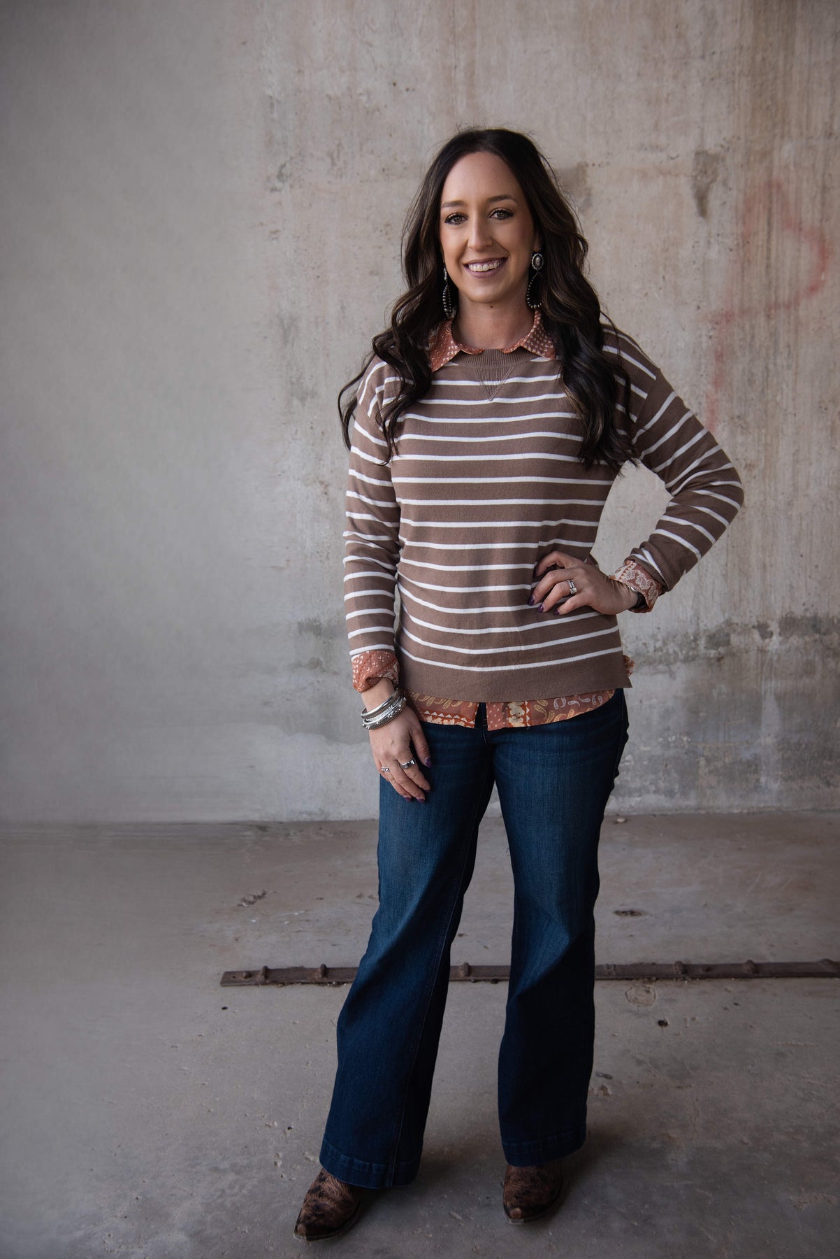 Cozy up in our Horizon Stripe Sweater—a dreamy blend of soft comfort and timeless style. Featuring classic stripes in a warm mocha brown tone, this lightweight layer is perfect for layering or wearing solo. Effortlessly chic and undeniably comfortable, it's your new go-to for casual days and relaxed vibes.