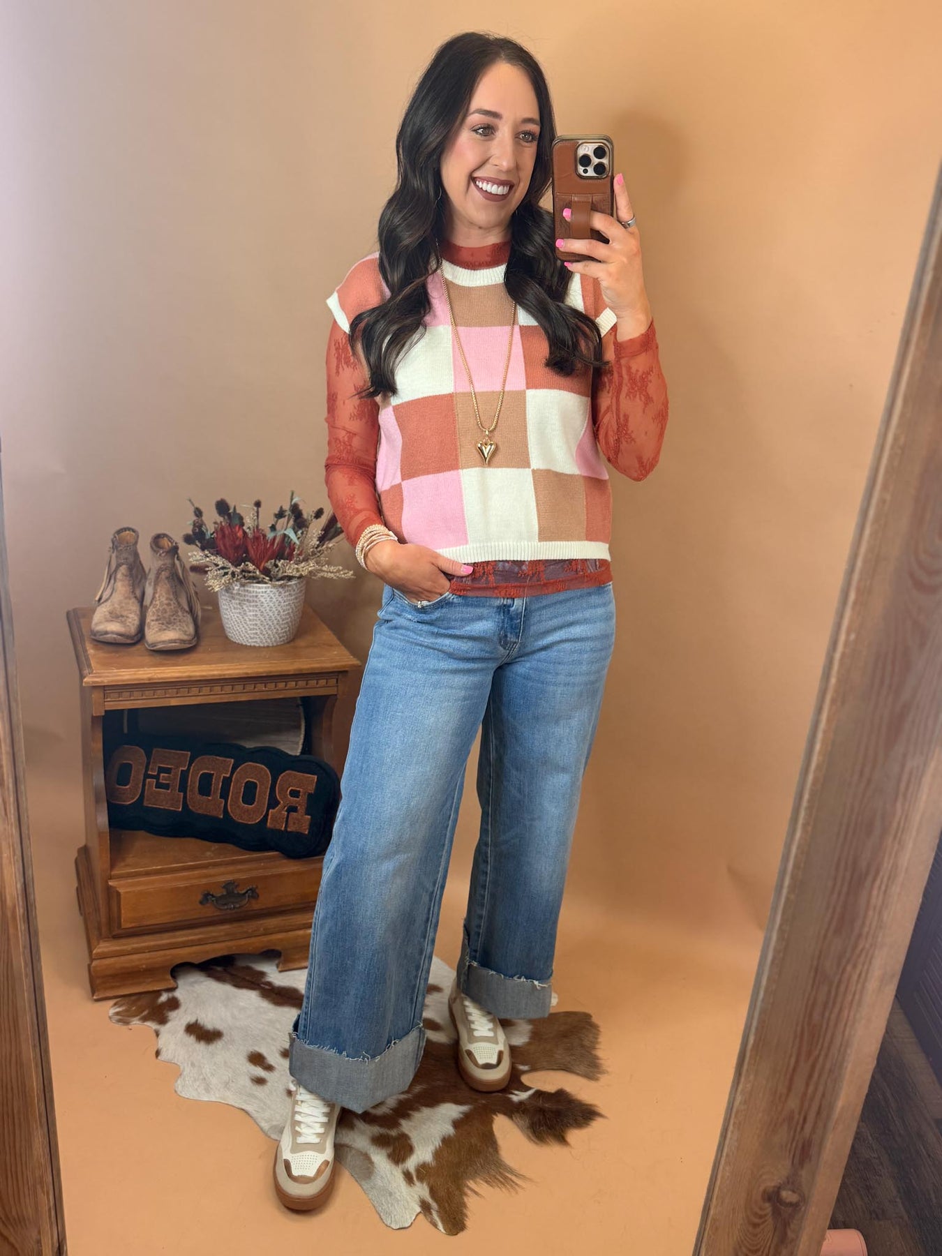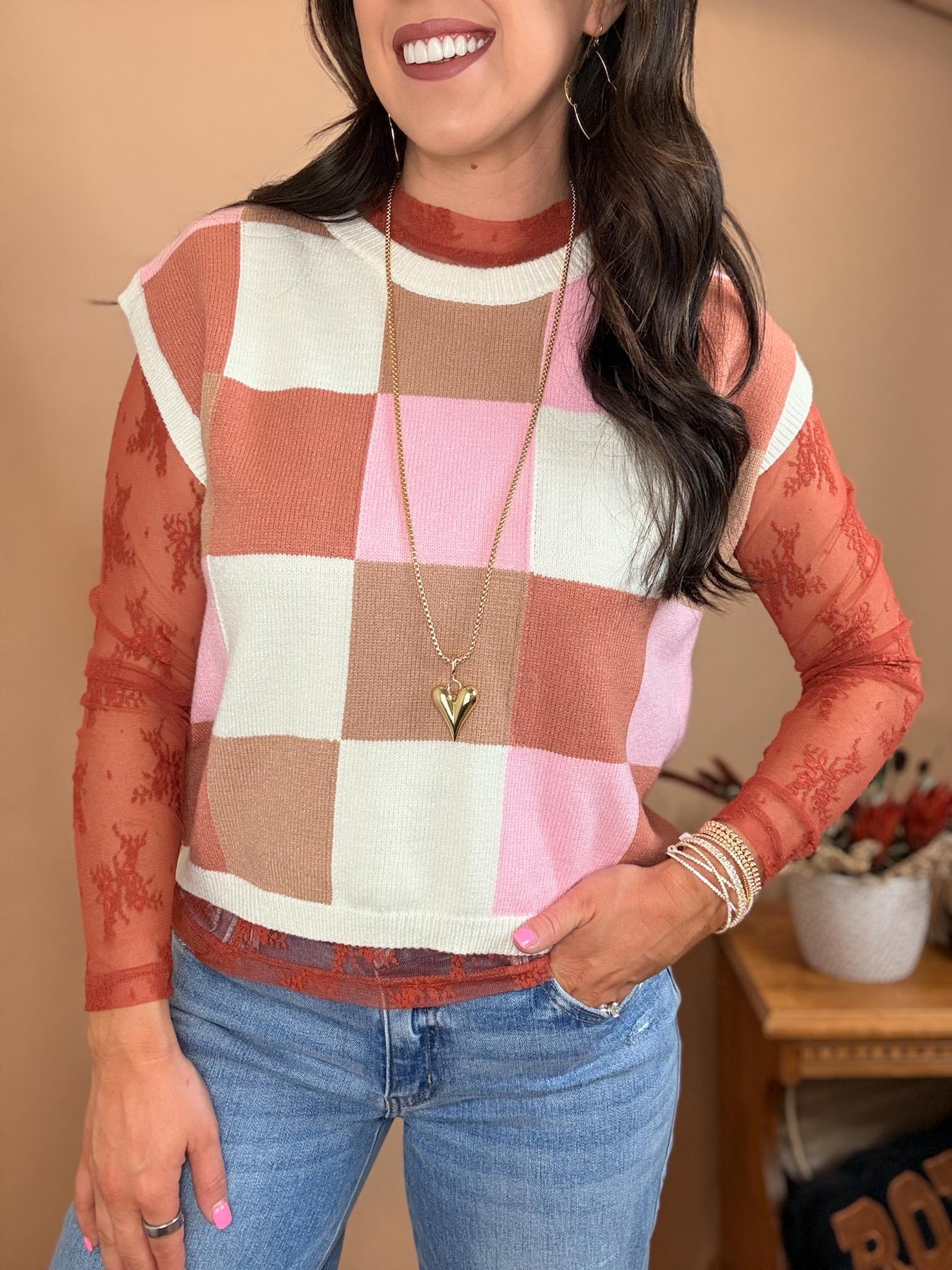 This brown/white/pink color combo is the perfect transition piece into spring.
