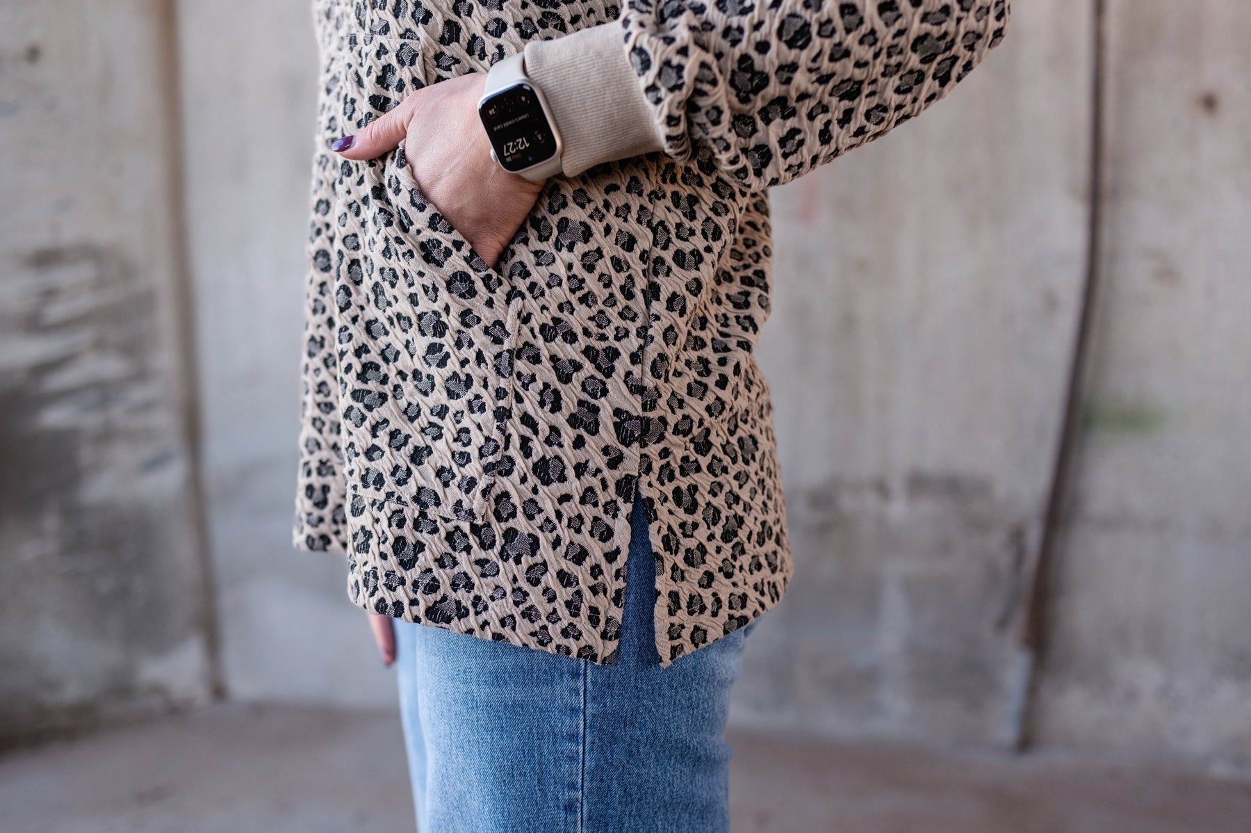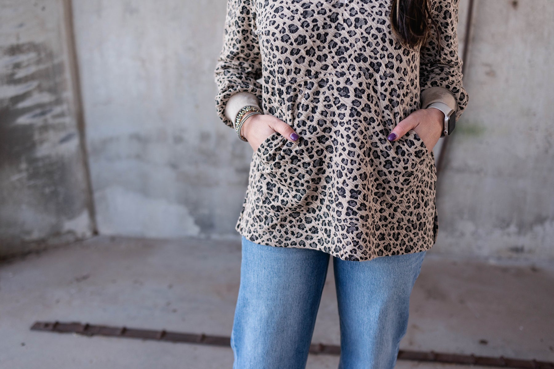 Unleash your wild side in this leopard print quarter zip pullover. Crafted from textured, medium-weight fabric that feels as good as it looks, this sweater features practical front pockets and a trendy split side hem for effortless style. Perfect for layering or wearing solo—your new go-to piece awaits.