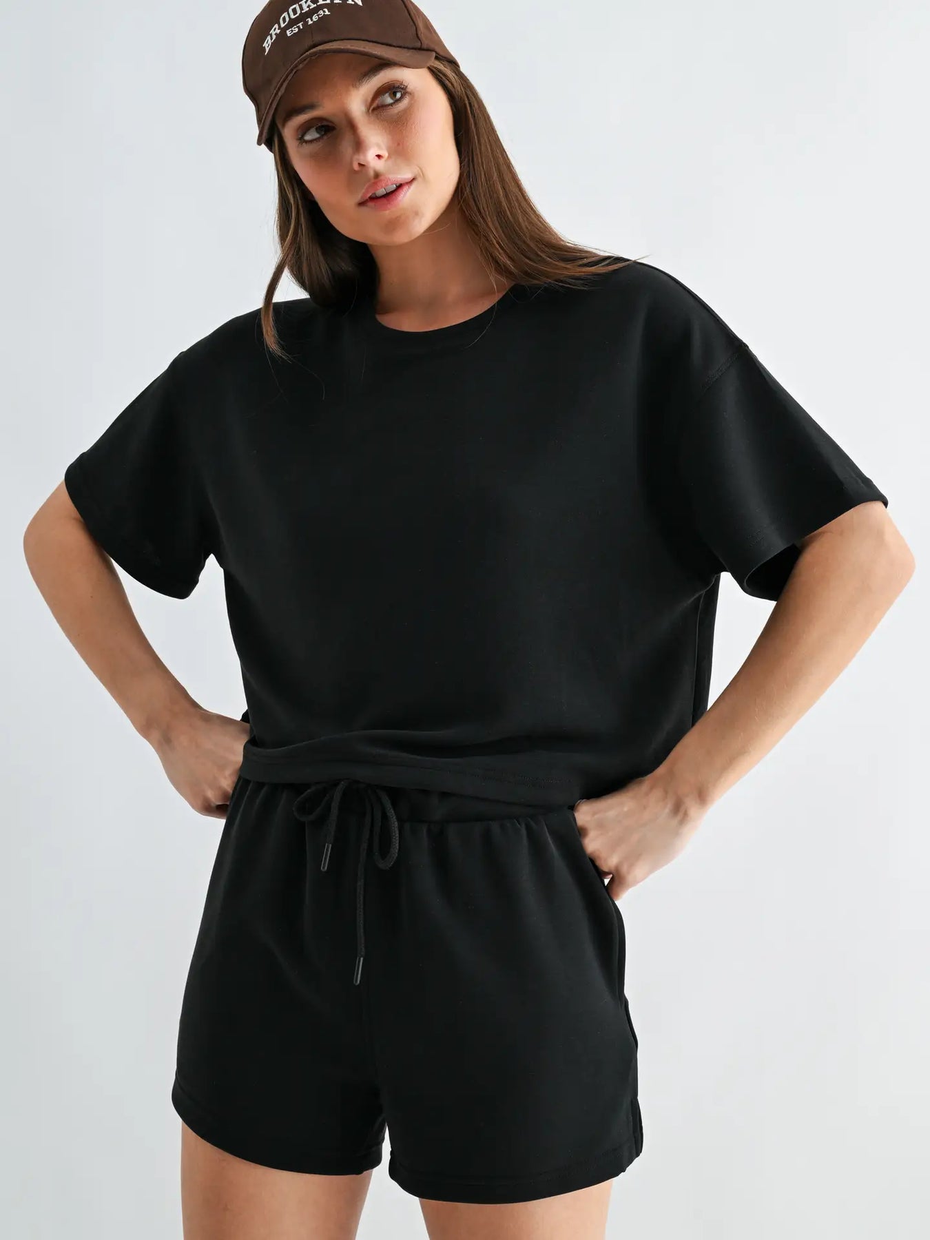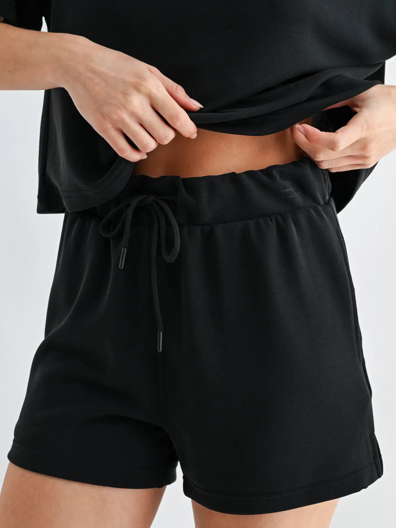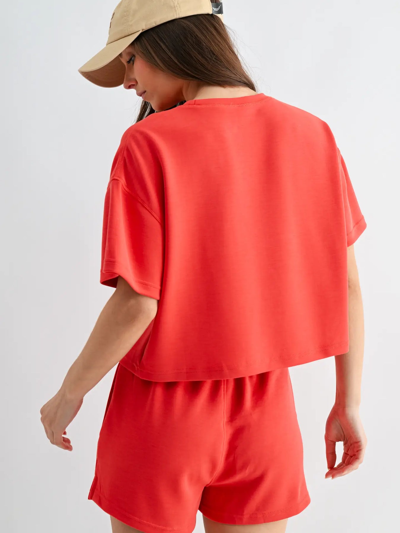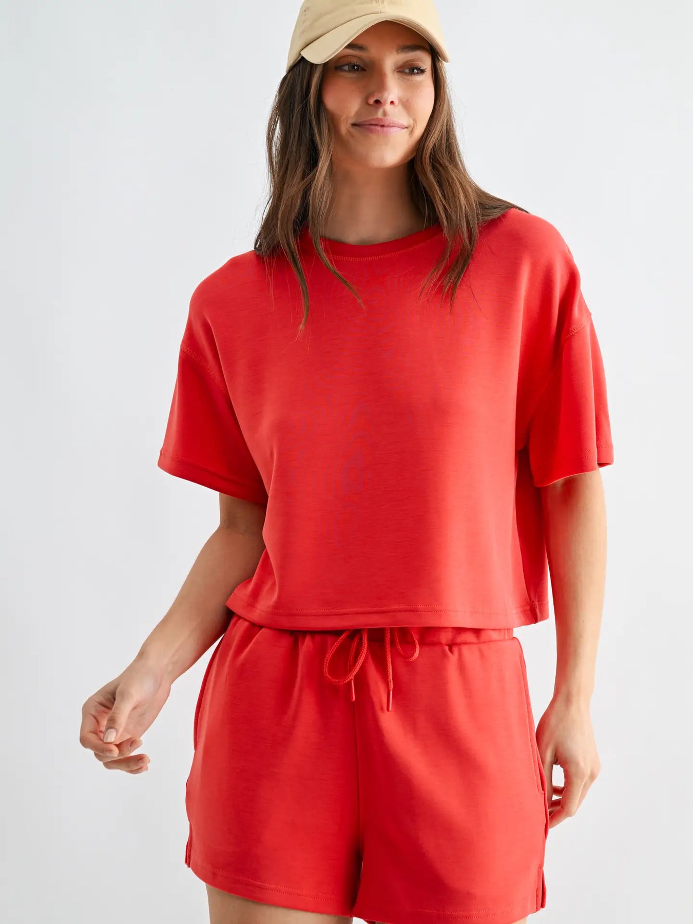 Relaxed, refined, and unbelievably soft — this t-shirt and short set is crafted from our signature sand-washed scuba fabric with a buttery-smooth, spongy hand feel. The boxy tee pairs perfectly with coordinating drawstring shorts for an effortlessly elevated lounge look. Comfortable enough for downtime, styled enough for out and about.