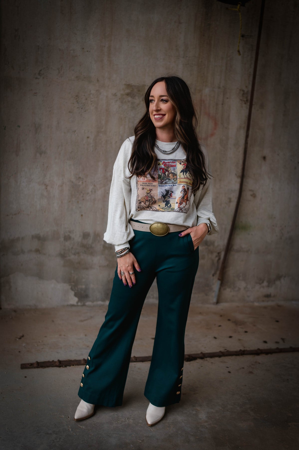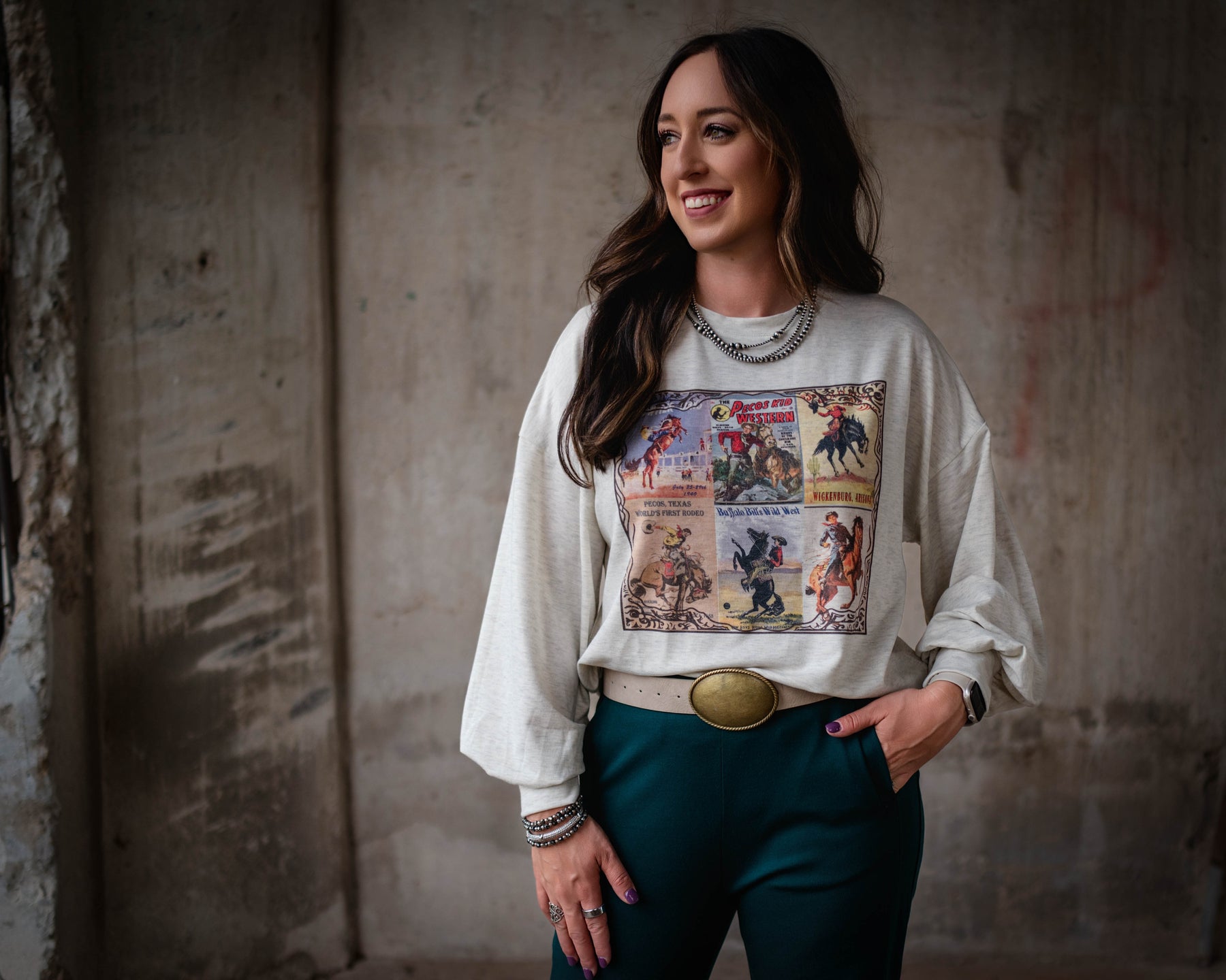 Wrap yourself in comfort with this lightweight long sleeve. Crafted from super soft French terry fabric, it's the perfect layering piece for effortless style. The relaxed fit and balloon sleeves create a laid-back silhouette that works with everything in your closet. Whether you're heading out for the day or settling in at home, this sweatshirt delivers cozy vibes with a touch of southwestern flair.