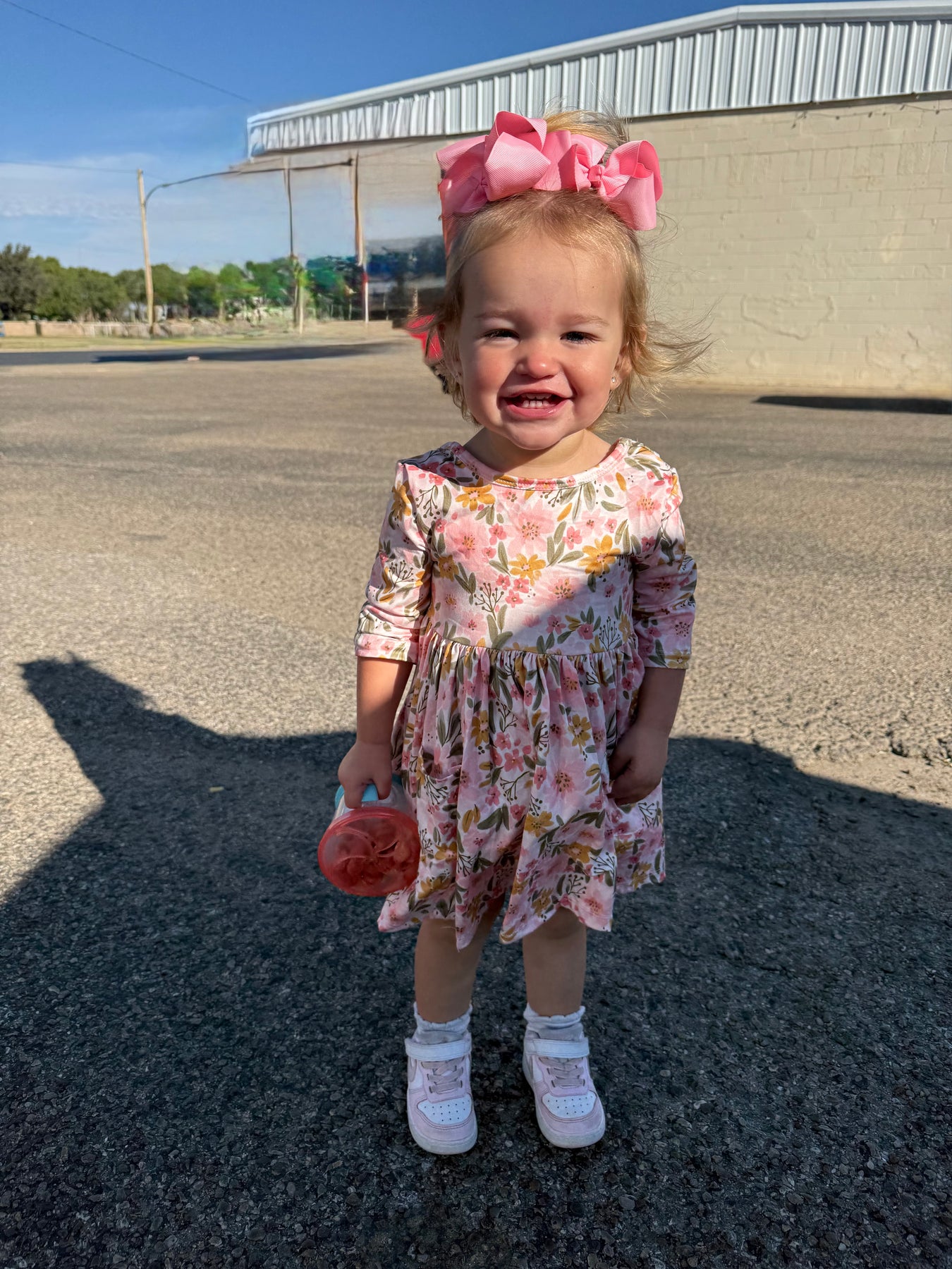 The perfect dress for school, special occasions, and everyday play! Designed by a mom and a dad. Mom wanted something twirly, comfortable and easy to wash. Dad wanted something easy to get on his chubby, big headed toddler. Designed with a scoop back for quick on and off, and higher neckline for modesty.