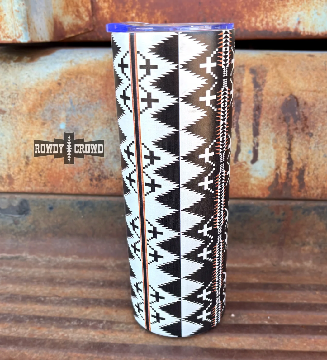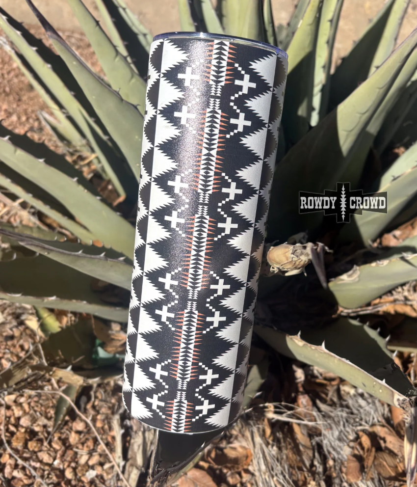The Tulsa King Tumbler is a stylish black and white aztec tumbler, accented with warm rust tones that add a unique touch. The eye-catching design is sure to have everyone at the tailgate asking where you got that cup!